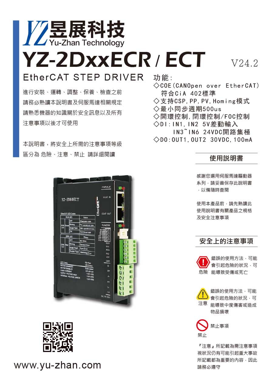 左右滑動看表格驅動器 產品型號 適用馬達 YZ-2D60ECR/ECT ( 適用 YKM-EAA-☐42mm 系列 )