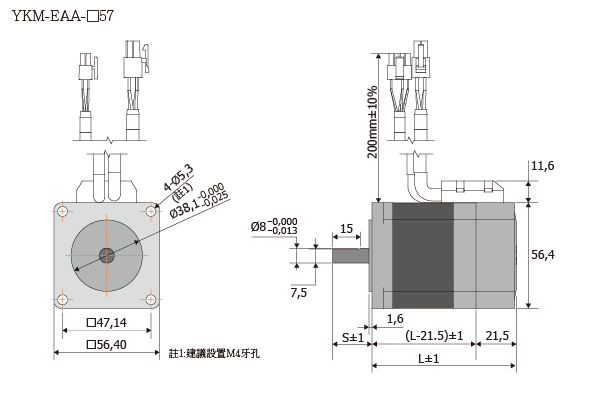 全閉迴路步進馬達 尺寸圖 Dimension 型號:YKM-EAA-□57mm